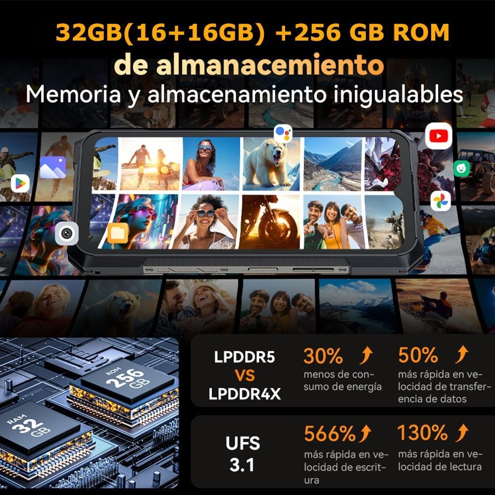 Experimente una eficiencia con hasta 32 GB de RAM (16GB + 16GB ampliables). Junto con 256GB/512GB de almacenamiento interno y la opción de expandir hasta 1 TB mediante una tarjeta TF, nunca se quedará sin espacio para sus aplicaciones, fotos y videos.