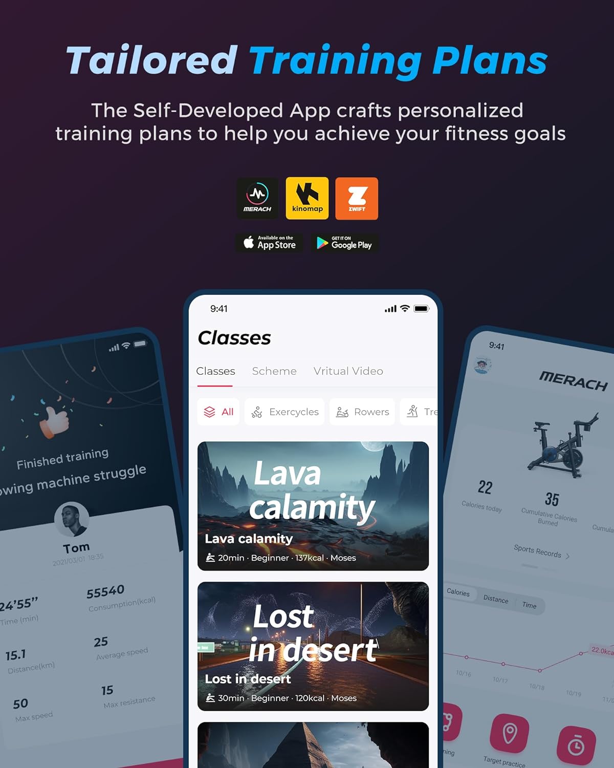 Planes de Entrenamiento Personalizados de la APP: mejore su viaje de acondicionamiento físico con nuestra amplia gama de clases de ejercicio gratuitas y programas de entrenamiento personalizados. Nuestra aplicación integra a la perfección métodos HIIT, lo que le facilita realizar un seguimiento de su progreso con métricas en tiempo real como distancia, tiempo, calorías, BPM promedio y más. Experimente la optimización en su máxima expresión y disfrute de la compatibilidad con KINOMAP y Zwift APP para una experiencia de fitness integral.