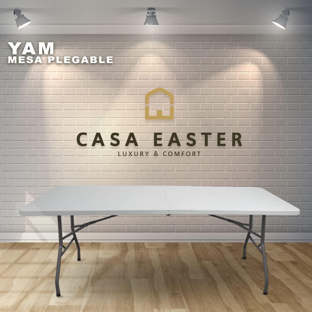 - Mesa PLEGABLE TIPO PORTAFOLIO 1.80 CASA EASTER, es perfecta para momento con la familia y amigos. Su diseño practico, cómodo y portátil es ideal para llevarla y traerla a cualquier parte Superficie rígida Fácil de armar, su instalación requiere pocos minutos. Mesa plegable para facilitar su transporte y resguardo.
